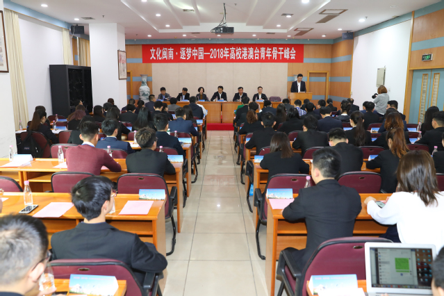 12月19日至23日,“文化闽南▪逐梦中国”2018年高校港澳台青年骨干峰会在我校成功举办,来自北京大学等全国25所高校老师和港澳台青年学生骨干参加会议。中华海外联谊会秘书处孙平,中央社会主义学院中华文化教研部主任于铭松,全国学联副秘书长曾锐,福建省海外联谊会秘书长廖长桂,共青团福建省委副书记陈志勇,厦门市海外联谊会副秘书长陈晶,厦门大学党委常委、组织部部长、统战部部长孙理等领导和嘉宾出席了开幕式。开幕式由校团委主持工作副书记洪海松主持。