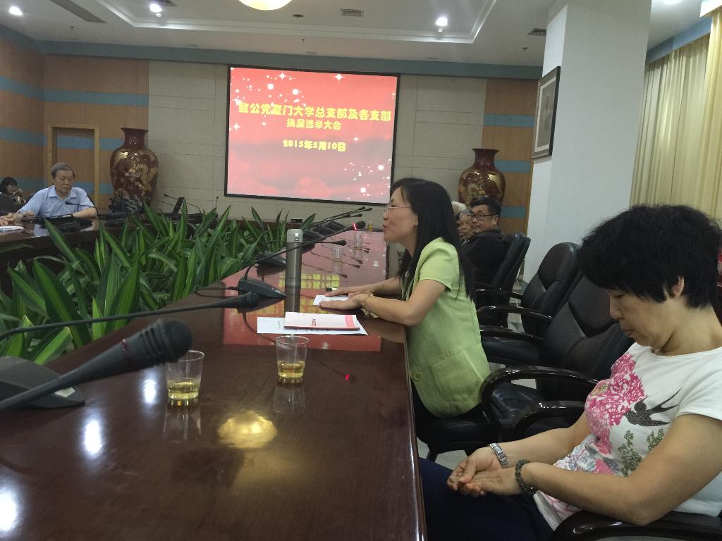 5月10日下午,中国致公党厦大总支在校颂恩楼215会议室举行换届大会,选举产生新一届总支委员会。李美华老师当选为新一届主委,许莉、朱建共、薛伟胜等三位老师当选为副主委。致公党厦门市委会主委徐平东、副主委郑幸红出席会议,校统战部部长梁卫中应邀到会。连心豪副主委主持了大会。