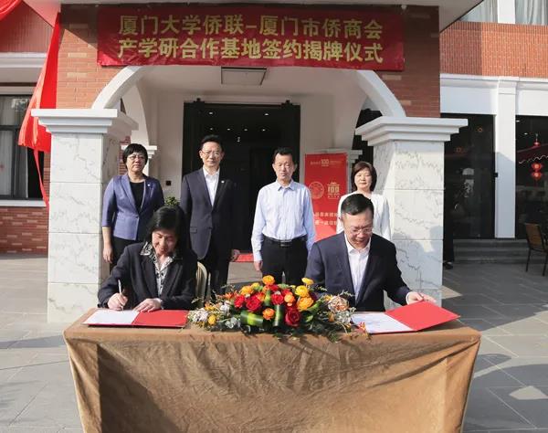 为深入贯彻科教兴国、人才强国战略,全面推进校企间的“产、学、研”合作,大力实施“人才强企”战略,4月6日,在厦门大学百年华诞之际,厦门大学侨联和厦门市侨商会在厦门大学“华侨之家”联合举办“产学研合作基地”签约揭牌仪式。中国侨联副主席、福建省侨联党组书记、主席陈式海,厦门市侨联党组书记、主席陈俊泳,厦门大学党委常委、组织部部长、统战部部长孙理,厦门市侨商会会长苏庆灿,厦门大学侨联主席程璇出席本次活动。厦门大学党委统战部副部长秦红梅主持签约揭牌仪式。