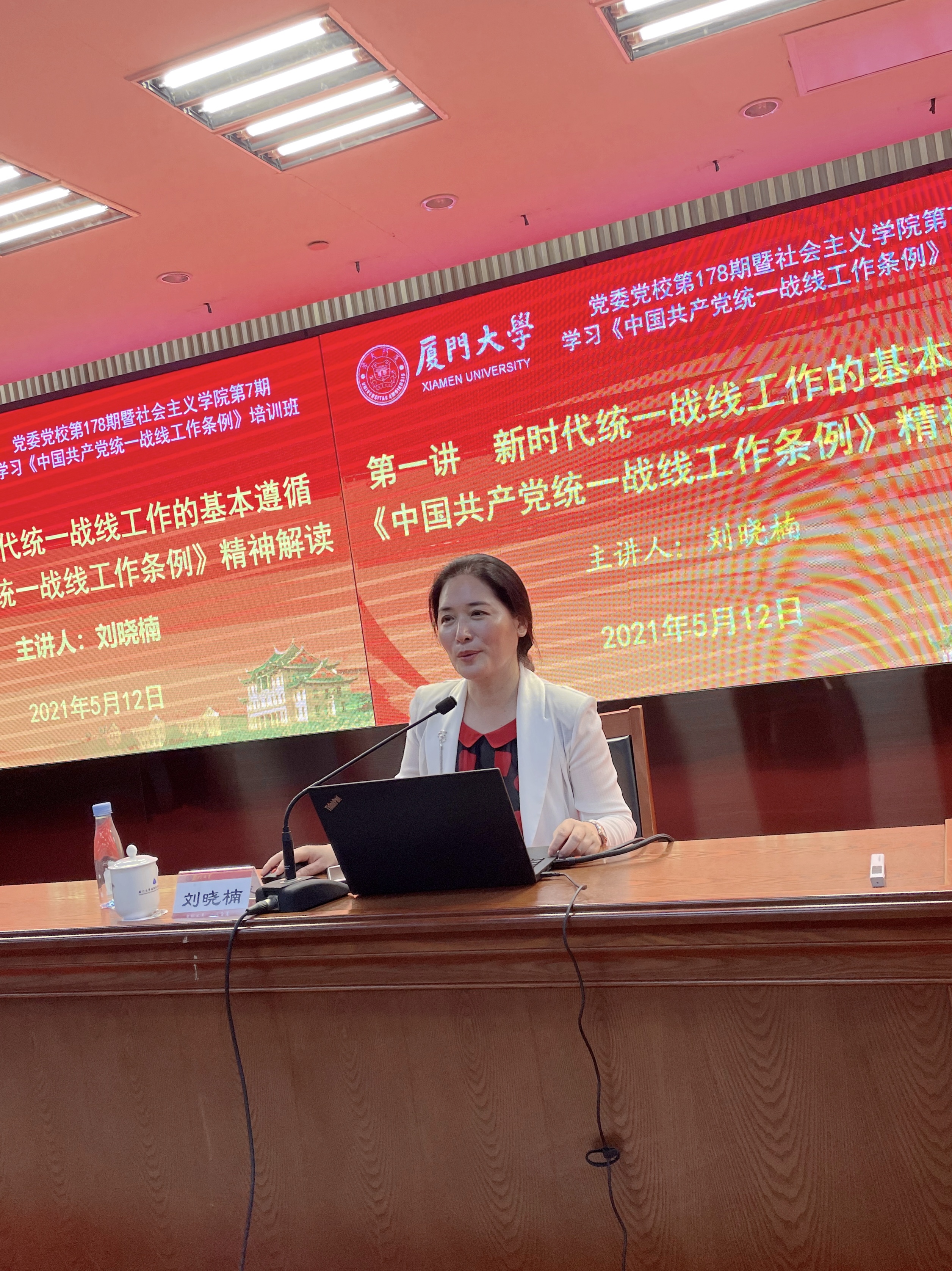 开班式后,福建省社会主义学院教授刘晓楠应邀作首场专题讲座,从新时代统一战线重要地位作用、《条例》修订突出特点及各领域统战工作着力点、扎实做好《条例》的贯彻落实等方面进行系统讲解。