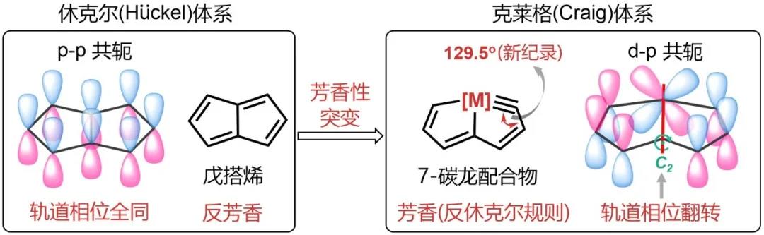 (金属导致“芳香性突变”及其“反休克尔芳香性”原理图)