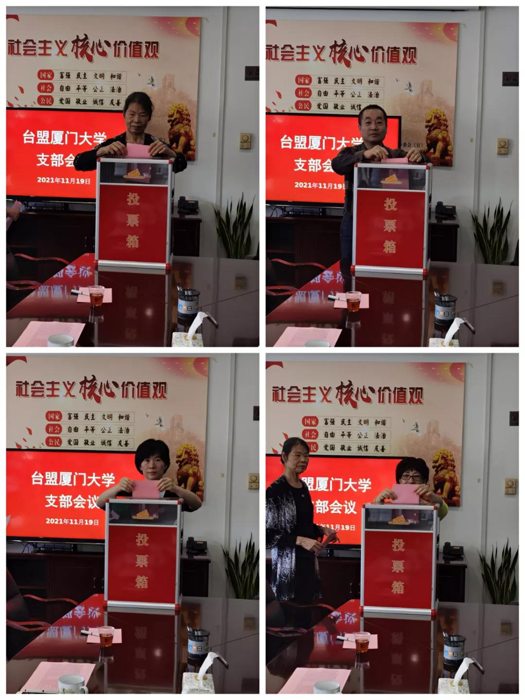 2021年11月19日下午,台盟厦大支部在厦门市团结大厦12楼会议室召开支部盟员会议。会议主要内容为学习贯彻十九届六中全会精神,以及选举台盟厦门市第九次盟员代表大会代表。会议由厦大支部主委刘臻主持。