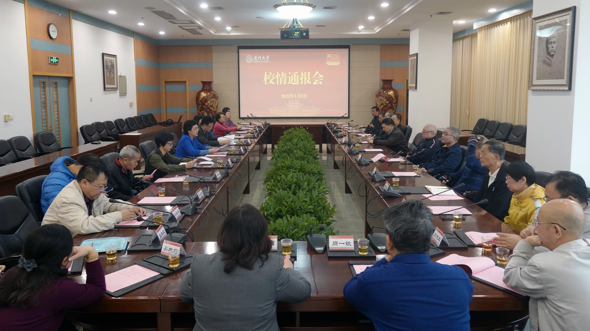 邓朝晖从“深刻领悟中国共产党的百年奋斗重大成就和历史经验,不断加强党的全面领导和提高党的建设质量”“坚持用习近平新时代中国特色社会主义思想铸魂育人,推动思想政治工作守正创新”“以习近平总书记重要贺信精神领航,全力推动学校事业高质量内涵式发展”三方面进行通报。她表示,2021年,学校深入学习贯彻习近平新时代中国特色社会主义思想和党的十九大、十九届历次全会精神,按照党中央决策部署和教育部党组、福建省委工作要求,坚持把政治建设摆在首位,不断加强党对学校的全面领导,切实落实立德树人根本任务,以建党百年和建校百年为契机,凝心聚力、奋勇争先,加快推进中国特色世界一流大学建设,学校各项事业取得了新的成效。