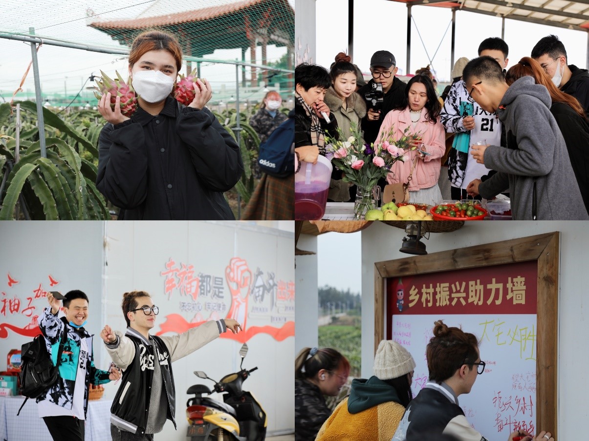 “今天第一次参加助农直播活动,跟着专业主播一起展示和推介了特色农产品,也积极地发布了乡村振兴主题相关的短视频,希望能助大宅村一臂之力。”来自少数民族预科班的菲罗拉·尼合买提初次体验了助农直播带货,难掩内心的激动与喜悦。在与专业主播、大宅村民的积极互动中,能歌善舞的阿迪力江·阿力木和叶勒江·托力肯更是为大家带来了热情奔放的民族特色舞蹈和悦耳动听的歌曲,引来阵阵喝彩,掌声如潮,营造了“民族团结一家亲”的温馨氛围,为美丽乡村注入了青春力量。