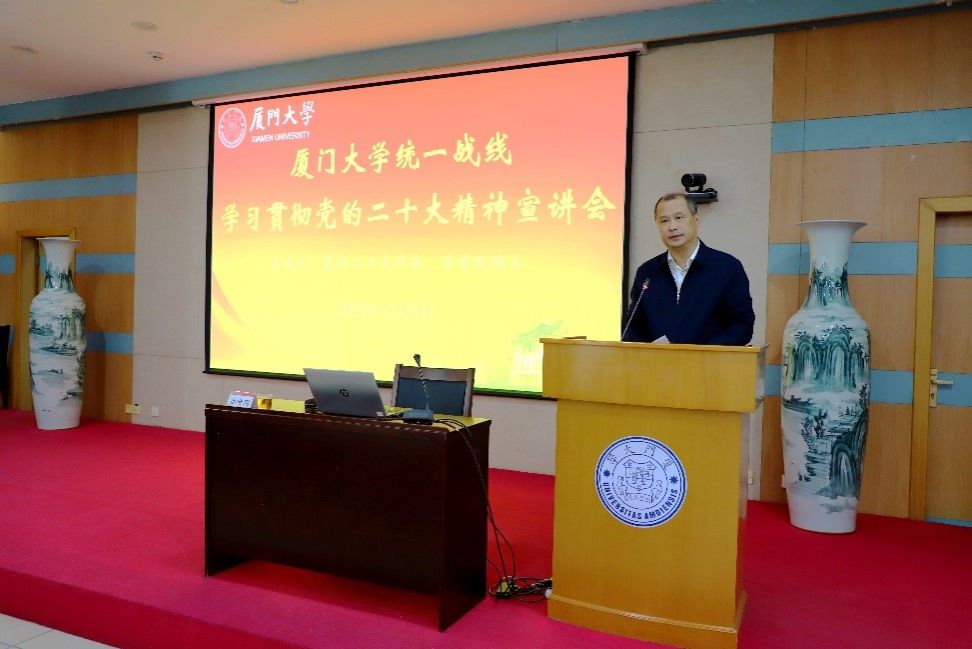 12月9日上午,学校在颂恩楼220会议室举办统一战线学习贯彻党的二十大精神宣讲会。党的二十大代表、中科院院士、化学化工学院教授孙世刚传达党的二十大精神,会议由校党委常务副书记林东伟主持。校党委常委、组织部部长、统战部部长孙理,校各民主党派、统战团体负责人及成员代表等参加会议。