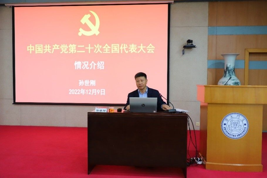 孙世刚回顾了会议召开情况和福建代表团参会情况,从党的二十大的主要情况,党的二十大报告主要精神等方面全面系统地传达了党的二十大精神,分享了参会和学习心得体会。孙世刚表示,党的二十大开启了党领导全国人民全面建设社会主义现代化国家、实现第二个百年奋斗目标、以中国式现代化全面推进中华民族伟大复兴的新征程。党的二十大报告总揽全局、气势恢宏、思想深邃、内涵丰富,通篇闪耀着马克思主义真理光芒、贯穿了以人民为中心的发展思想、体现了敢于斗争、善于斗争、攻坚克难、勇攀高峰的昂扬姿态、彰显了大国领袖的雄才大略和为党为国为民的赤子情怀,其中对教育、科技、人才工作进行统筹部署,更是鼓舞人心。中纪委工作报告彰显了以习近平同志为核心的党中央坚持党要管党、全面从严治党的政治定力,彰显了新时代中国共产党人勇于自我革命的历史主动、彰显了坚决打赢反腐败斗争攻坚战持久战的坚强决心。