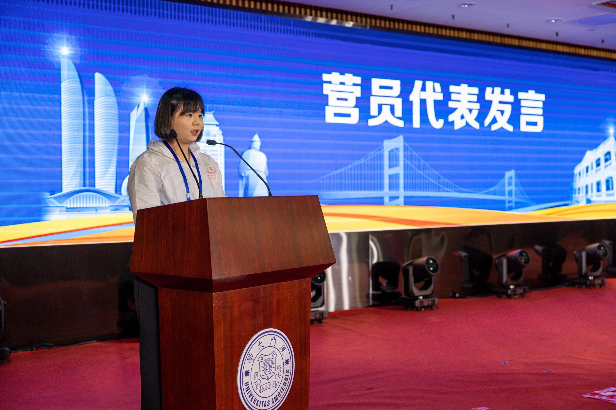 金门大学学生林妤芯作为营员代表发言,她期许两岸学子都能有更多交流平台与互动机会,与优秀青年相互支持和勉励,共同收获色彩缤纷的人生阅历,创造弥足珍贵的奇美回忆。