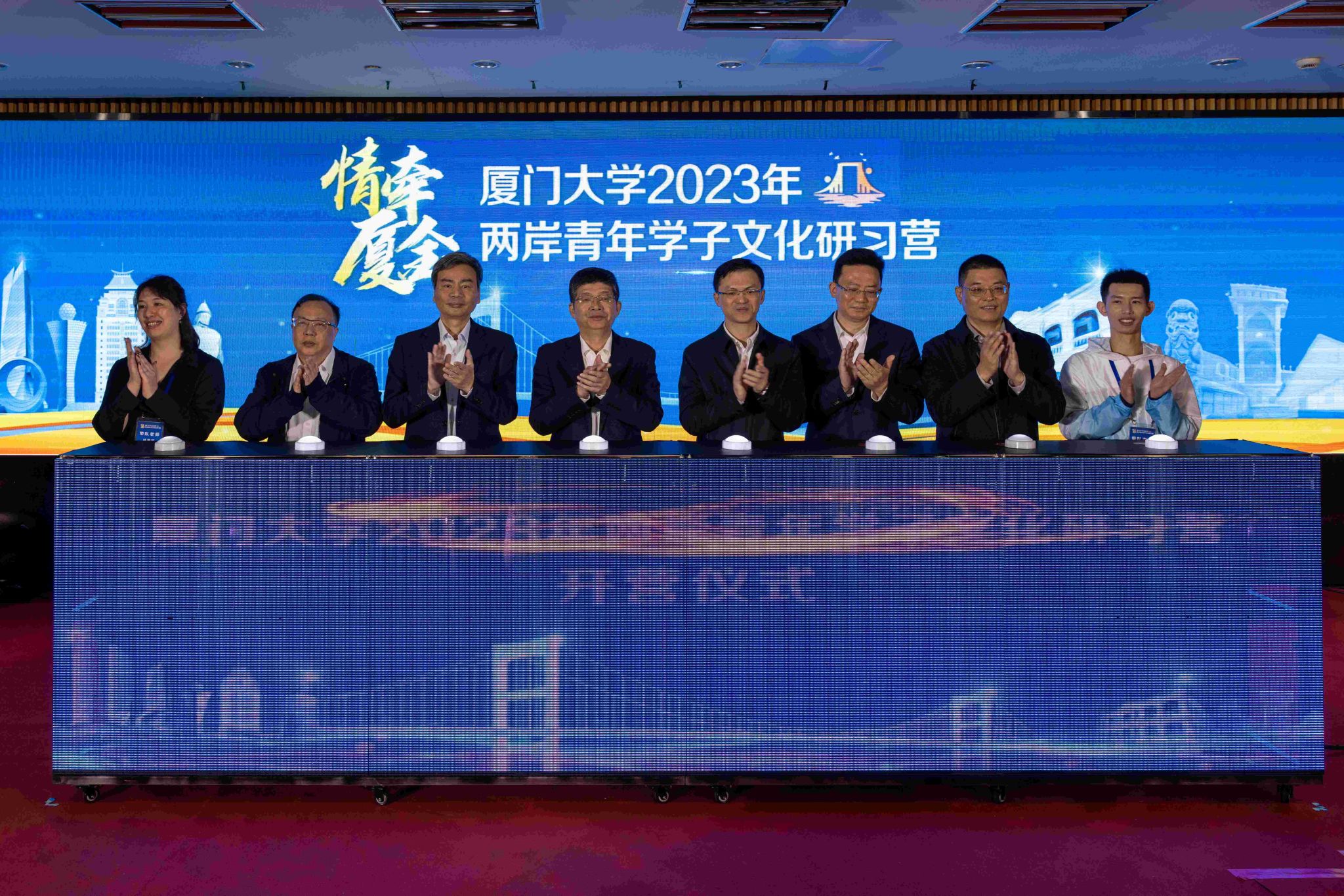 随后,厦门大学党委副书记徐进功、福建省青年联合会秘书长陈建新、厦门市人民政府台港澳事务办公室副主任谢永福、厦门大学党委常委、组织部部长孙理、厦门市文化和旅游局一级调研员王业晖、招商银行股份有限公司厦门分行副行长林贤顺、金门大学通识中心专任副教授林黛珲、铭传大学带队老师陈冠颖共同启动研习营。
