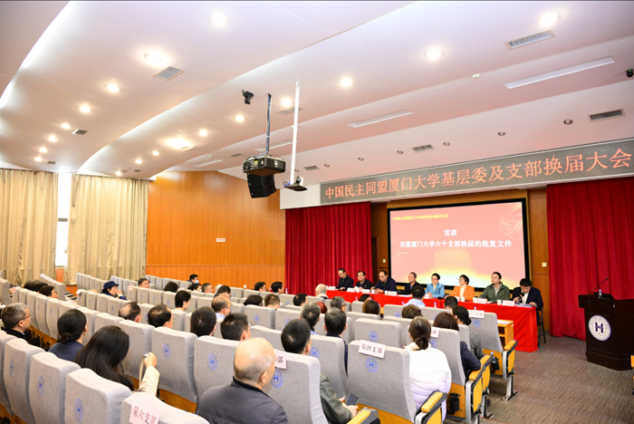 大会分三个阶段进行。第一阶段会议由民盟市委组织部三级调研员陈志毅主持。会议审阅各支部《工作报告》,与会盟员分支部进行无记名投票,产生了厦门大学六个支部的委员。新任委员们召开六个支部第一次全体支委会议,并确认了各支部组成人员名单及分工。第一至六支部主委分别为:匡勤、陈晓兰、卜祥忠、郑思明、刘传尧、韩大雄。