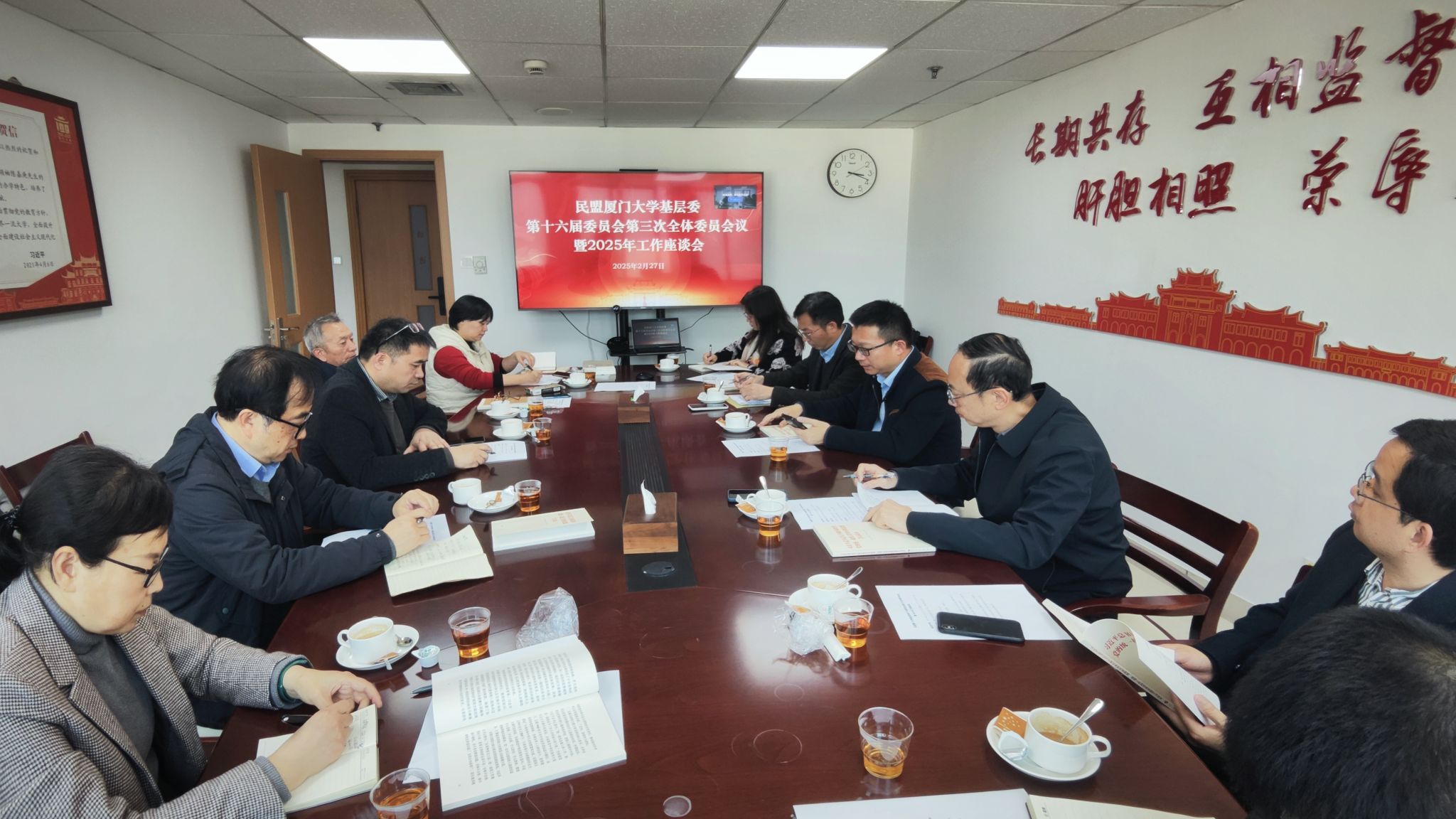 2025年2月27日下午,民盟厦门大学基层委召开第十六届委员会第三次全体委员会议暨2025年工作座谈会。民盟厦门大学基层委委员、各支部主委齐聚一堂,共同回顾过去一年的工作成果,并为新一年的工作锚定坐标、细化举措。民盟厦门市委组织部陈志毅部长、兰轶伦同志到会指导,基层委全体委员、各支部主委参会。