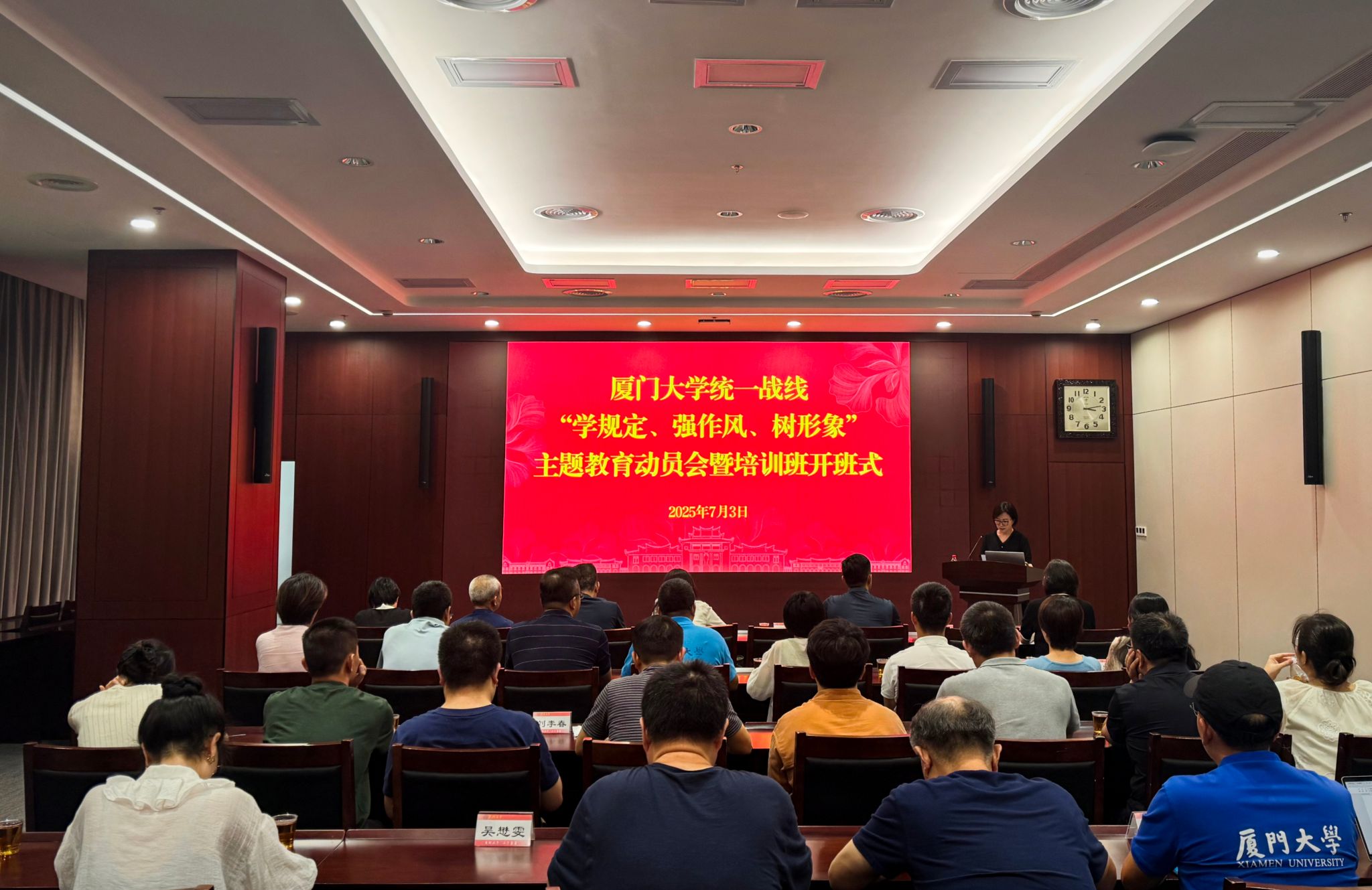 7月3日,厦门大学统一战线“学规定、强作风、树形象”主题教育动员会暨培训班开班式在颂恩楼220会议室举行。参加会议的有各民主党派、统战团体负责人和成员代表,校党委统战部副部长秦红梅主持开班式。校党委统战部部长杨柳出席会议并作动员讲话。她指出,学校各党派团体要深刻认识开展主题教育的重大意义,准确把握主题教育的目标任务,积极担当作为,坚持不懈用习近平新时代中国特色社会主义思想凝心铸魂,不断加强自身建设,持续提升履职能力,确保主题教育取得实效。