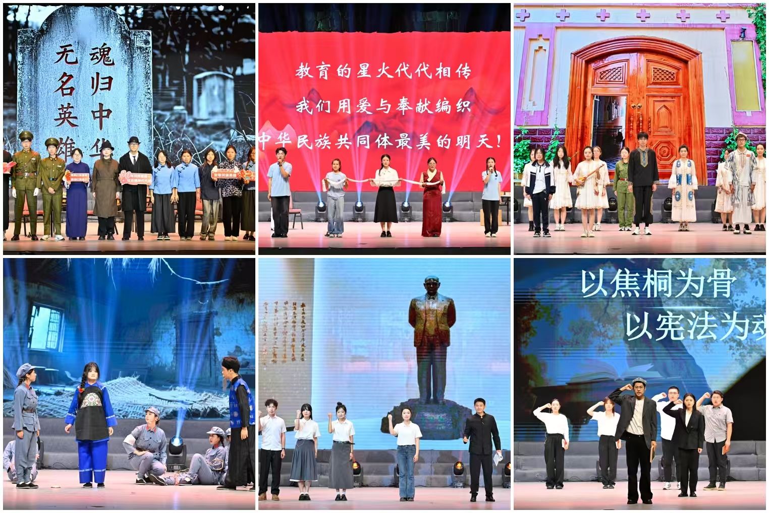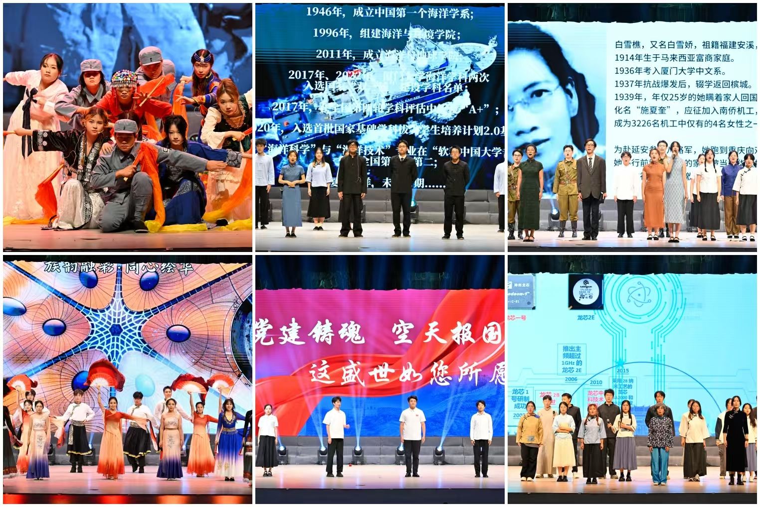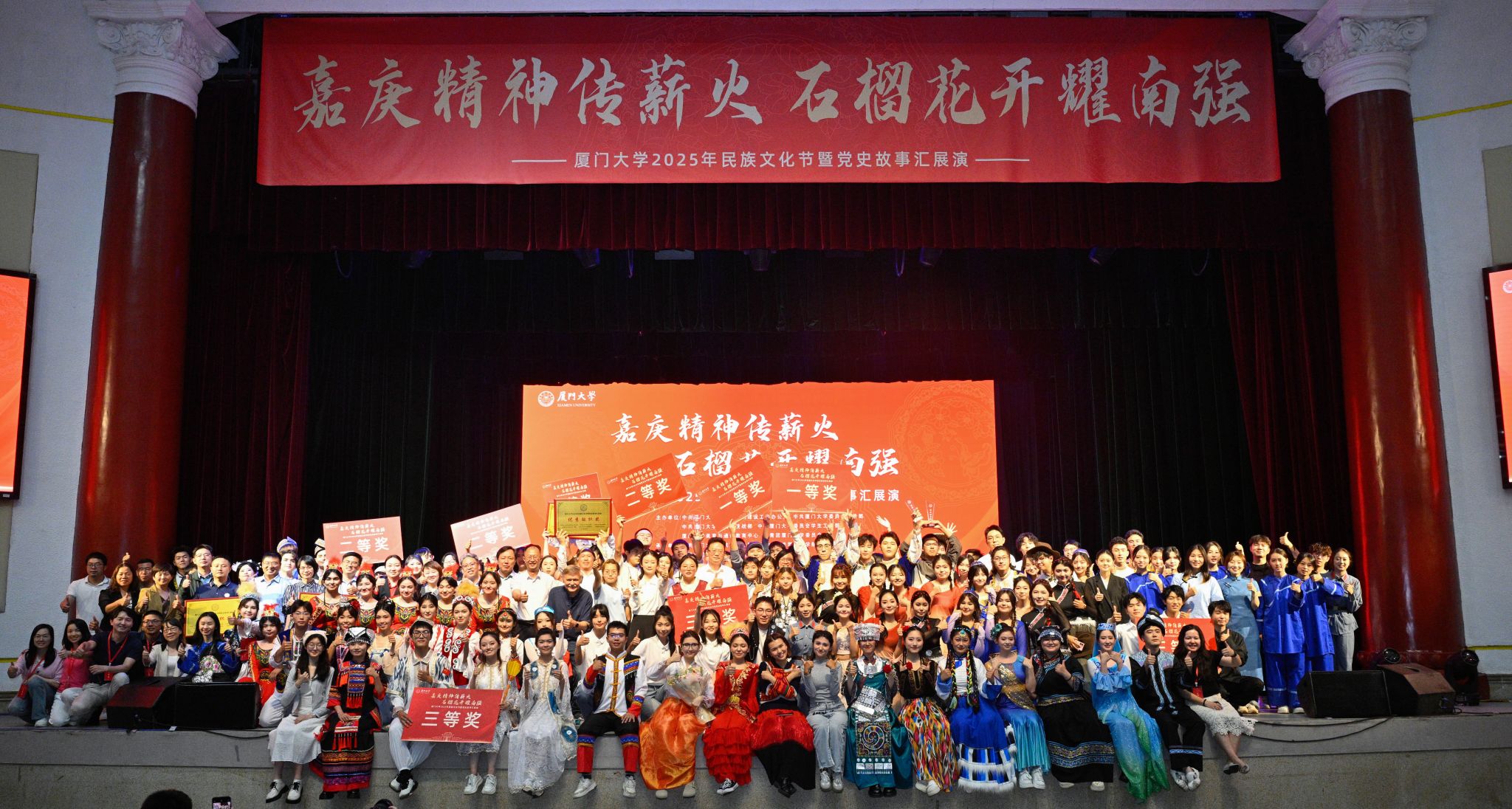 本届大赛以“嘉庚精神传薪火,石榴花开耀南强”为主题,自四月启幕以来,全校各院系30余支队伍踊跃报名,以青春之名致敬民族文化与党史精神。最终,12支队伍在初赛中脱颖而出。决赛以“根脉紧相连”“星火永相传”“同心筑华章”三个篇章作为逻辑主线,12支参赛队伍立足学科专业特色,融汇民族文化与党史故事,以舞台剧、话剧、三句半、舞蹈等形式进行展演,带领观众体悟中华民族多元一体的文化魅力、中国共产党的光辉奋斗历程和感人事迹,为铸牢中华民族共同体意识、培养担当民族复兴大任的时代新人注入源头活水。