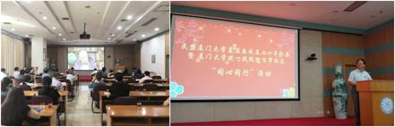 现场播放了民盟厦大基层委历年会议和活动照片集锦和盟员黄本立院士为本次纪念活动专门录制的讲话视频。