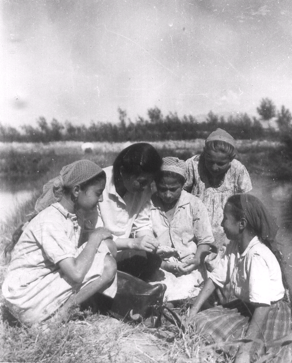 1979年唐崇惕(中)在新疆伊犁察布查尔牧场给维吾尔族孩子们看当地传播牛羊东毕血吸虫病的媒介螺类